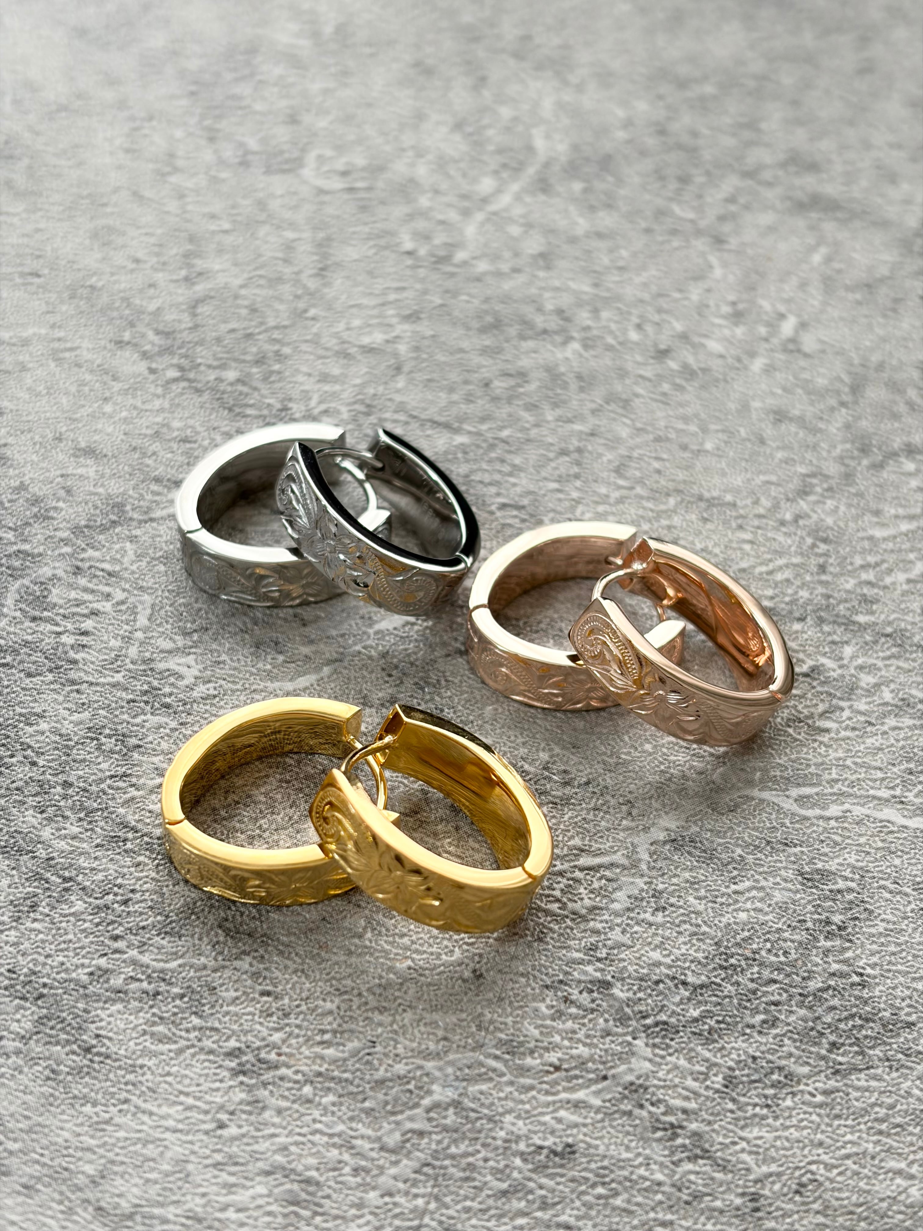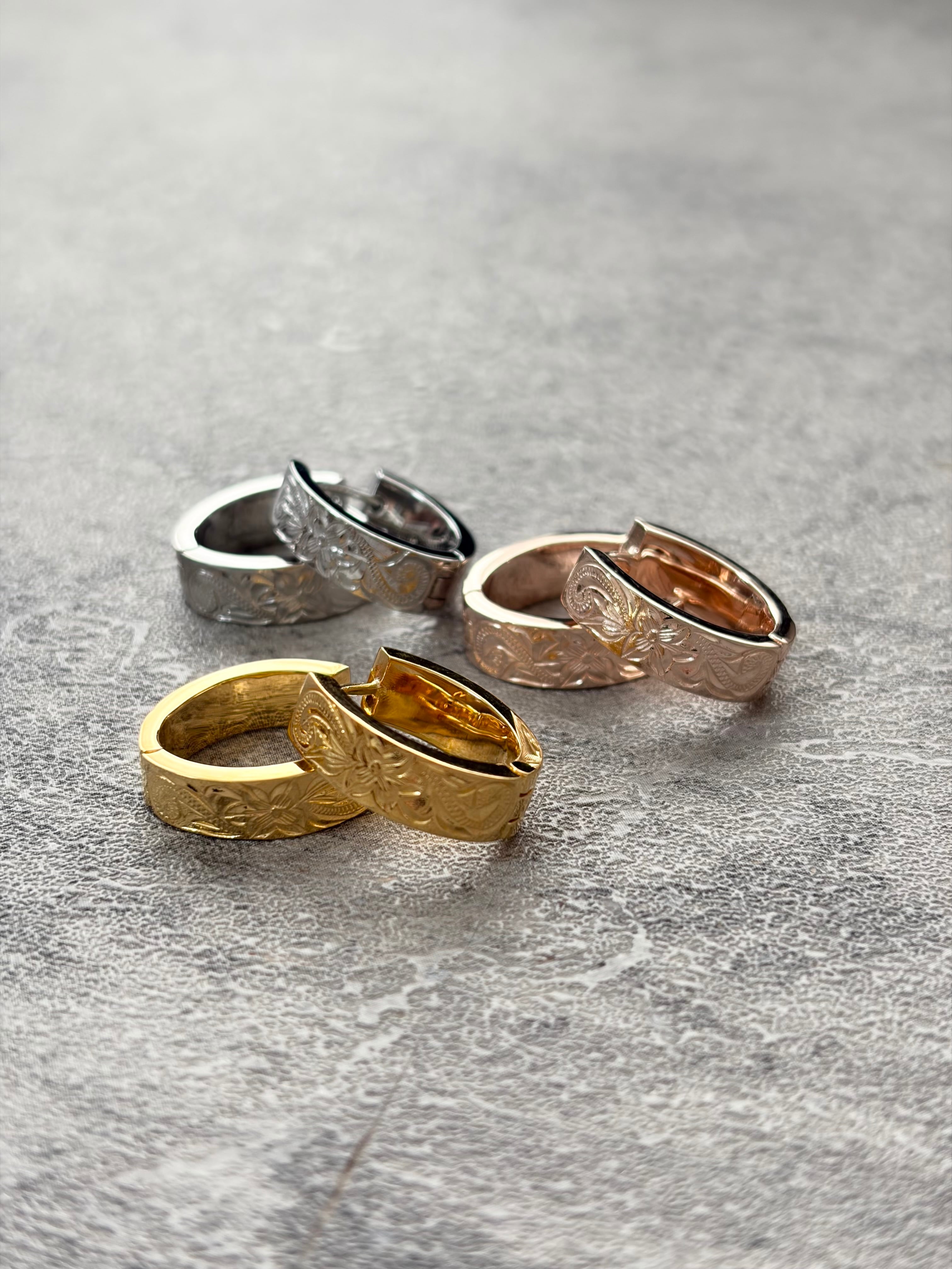 「プルメリア」と「スクロール(波)」の組み合わせは、「大切な人の幸せを願い、永遠に続く愛や幸せを運んでくる」という意味を持ちます。神聖な愛と信頼、人生の荒波を乗り越える力を象徴する、非常に人気のあるペア・ギフトデザインです。